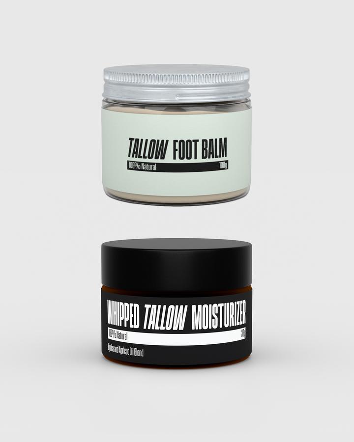 Premium winter skincare bundle for adults with extremely dry or rough skin. Includes our bestselling Whipped Tallow Moisturizer for intense facial and body hydration, plus the repair‑focused Tallow Foot Balm to heal cracked heels and rough patches. All‑natural, grass‑fed tallow formula that seals in moisture, so skin feels soft, smooth, and protected even in cold weather. Ideal for cold climates, frequent hand‑washing, or anyone who wants a single, powerful routine for face, body, and feet.